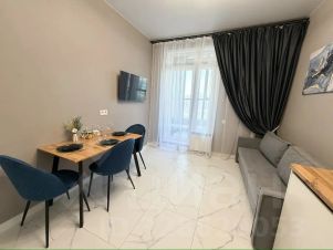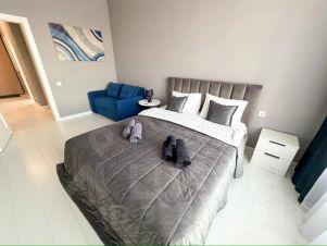 Уютная квартира в центре Взлетки. Современный интерьер с двуспальной кроватью и двумя раскладными диванами, что позволяет разместить до 4-х человек.