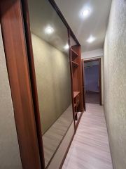 Комнаты раздельные, мебель частично в комнатах, кухни вся в комнате комод, новый линолеум, в коридоре шкаф, возможна покупка дивана. Кухня вся. Балкон. Обои в маленькой комнате можно переклеить, в большой комнате обои новые.