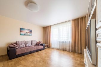 В квартире есть две уютные спальни и просторный зал, где вас встретит комфортный диван, который быстро раскладывается, создавая два дополнительных спальных места. Наслаждайтесь просмотром любимых программ на большом телевизоре и бесплатным Wi-Fi. Также одна из спален оборудована вторым телевизором для вашего удобства. Мы заботимся о вашем комфорте: чистейшее белоснежное белье из качественного материала, махровые банные полотенца и полотенца для лица обеспечат вам максимальное удобство.