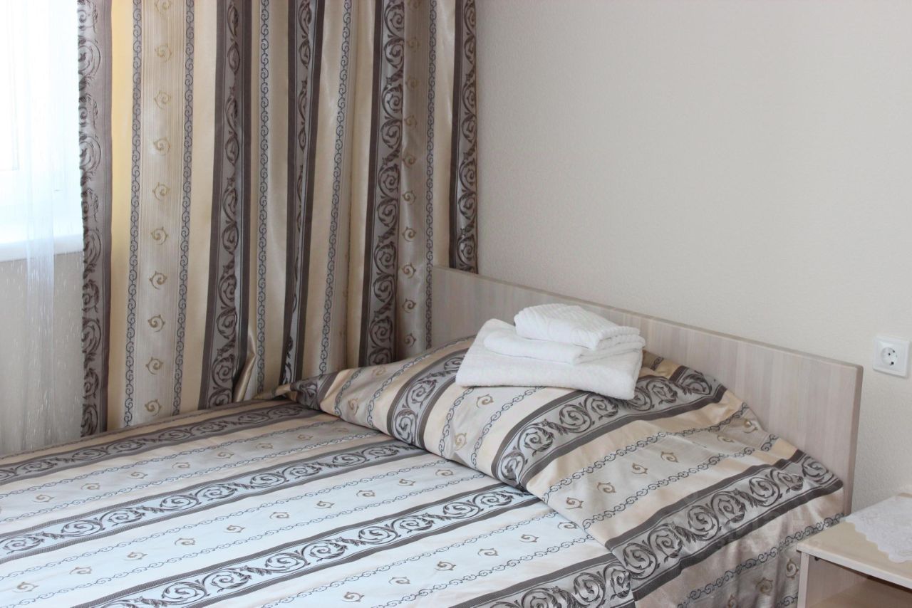 Номер оформлен в светлых нежных тонах. В номере имеются все удобства, санузел, душевая кабина, просторная кровать, холодильник, ТВ, кондиционер, односпальная кровать.