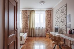 Большие, светлые комнаты с двумя окнами подарят гостям отеля чувство уюта и комфорта, а большая двуспальная кровать подарит крепкий сон. Рабочая зона оборудована письменным столом. В номерах свои собственные ванные комнаты, оснащенные высококачественной сантехникой, фенами, туалетными принадлежностями. Для всех гостей - мягкие махровые халаты и тапочки.