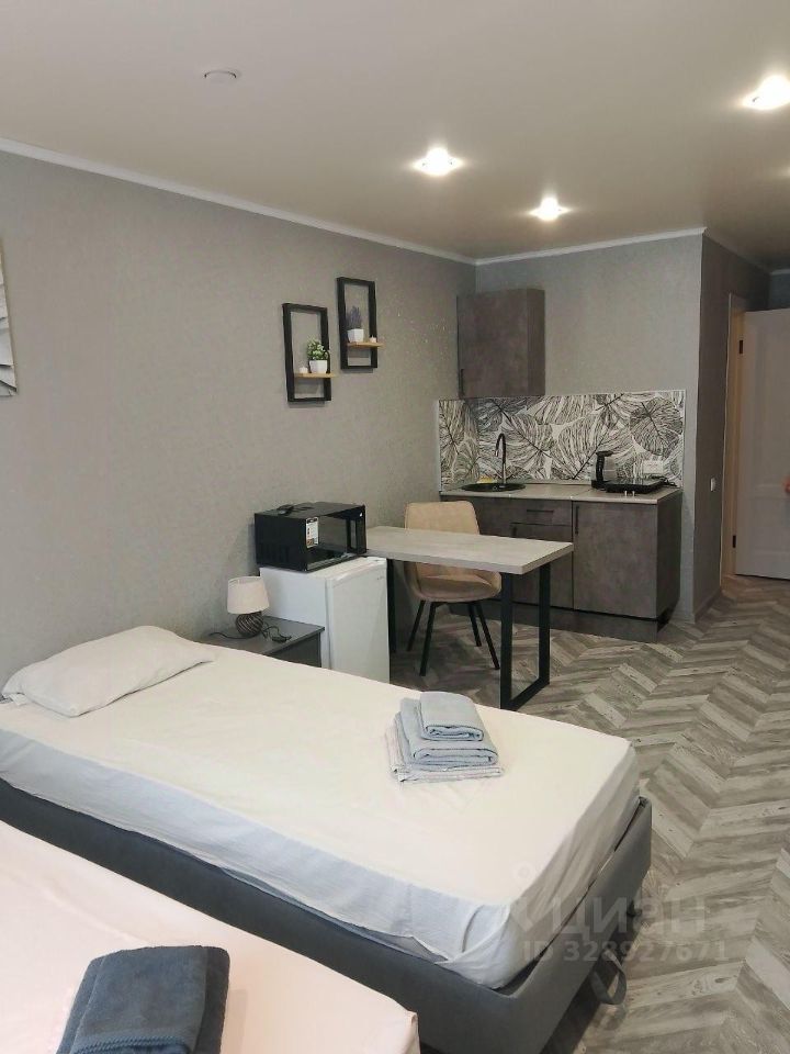 Однокомнатные апартаменты оснащены комфортной и новой мебелью со всеми необходимыми бытовыми приборами, современными ванными комнатами. Все квартиры оборудованы точками доступа Wi fi с быстрым интернетом. В апартаментах возможно размещение до 2-х человек, на двуспальных и односпальных кроватях.