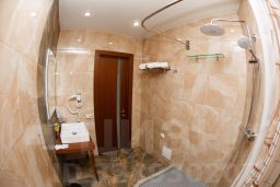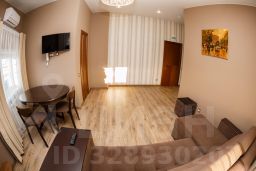В номере: двуспальная кровать и диван, обеденный стол, стулья, пуфик, шкаф, прикроватная тумбочка, кондиционер, телевизор. Стены санузла выложены из красивого керамогранита. Качественные постельные принадлежности, средства индивидуальной гигиены и великолепный сервис .
