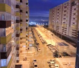 Дом современный, панельный, с двумя пассажирскими лифтами и наземной парковкой. На входе установлен пандус, поэтому можно легко попасть в подъезд с коляской или велосипедом. Также в доме есть мусоропровод, что добавляет удобства в быту.