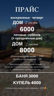 Баня и купель предоставляются без ограничения по времени (с 19:00 по времени готовности)