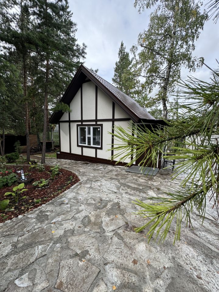 В доме ( 40 кв.м)располагается гостиная, кухня , изолированная спальня и ванная комната .