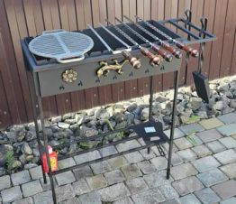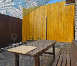 Так же есть небольшая территория где расположены мангальная зона и большой деревянный стол со скамейка.