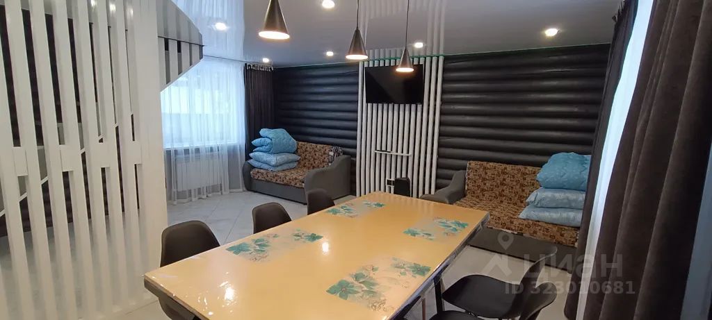 Первый этаж: 2-а двуспальных дивана, стол, стулья, на кухне холодная/горячая вода, холодильник, 2-х конфорочная электро плита, микроволновая печь, набор посуды, TV 15 цифровых каналов, музыкальная колонка, душевая и с/у, полы с подогревом.