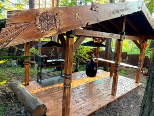Зона барбекю: мангал, казан, тандыр, беседка.