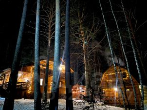 * 1 этаж: каминныи зал, туалет/душевая, кухня;
