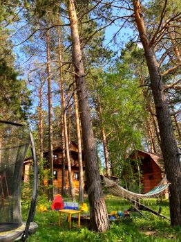 Для детей: горка, 4 вида качелей, песочница, домик, батут.