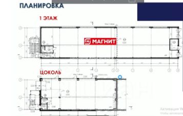Площадь здания 686 кв. м, два уровня: 1 этаж - 442 кв. м, занимает магазин "Магнит", цоколь - 246 кв. м, разделен на 4 помещения - 50 и 80 кв. м, с отдельным входом каждое.