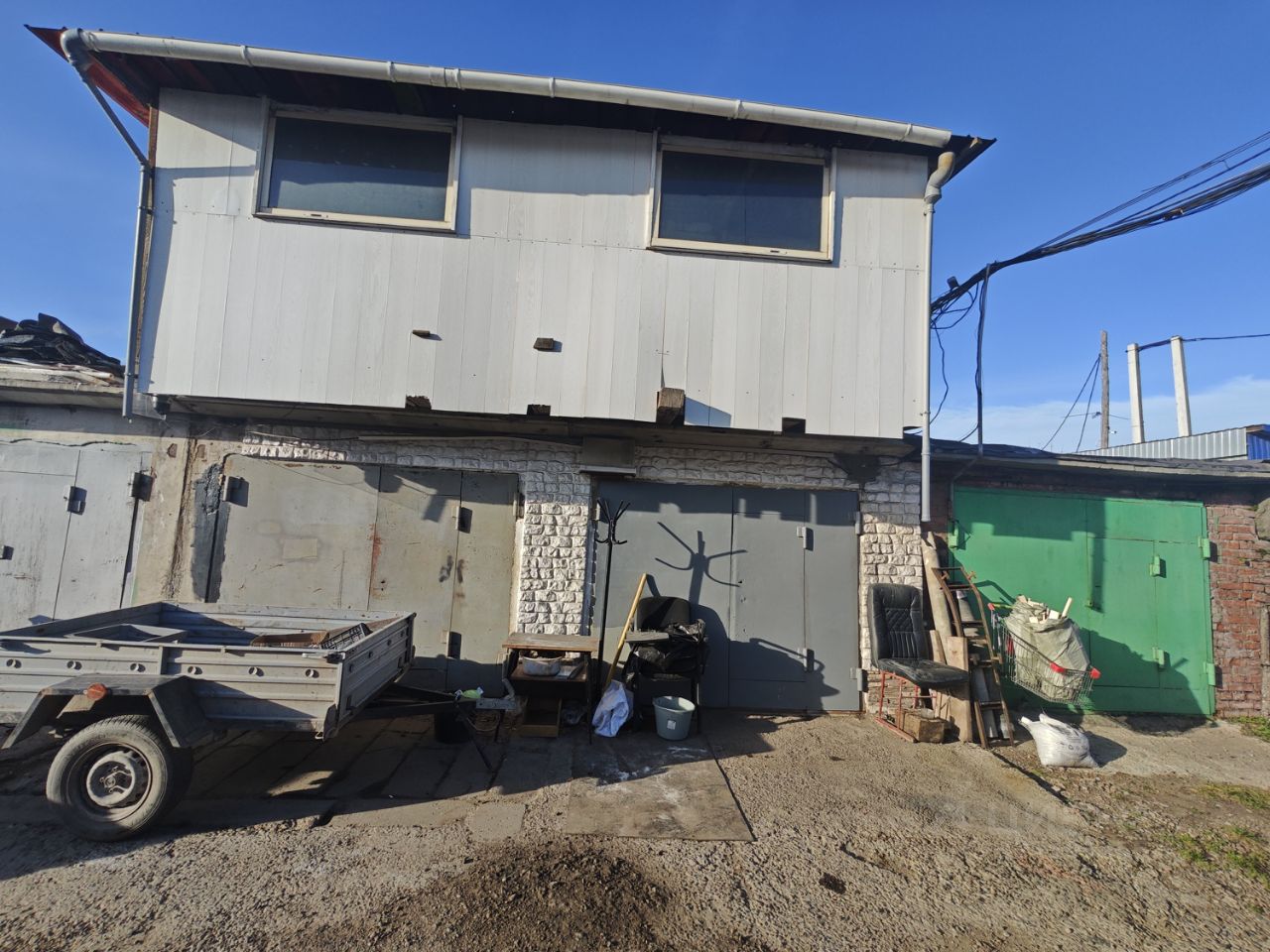 Двое ворот, имеется второй этаж, около 35кв м2.