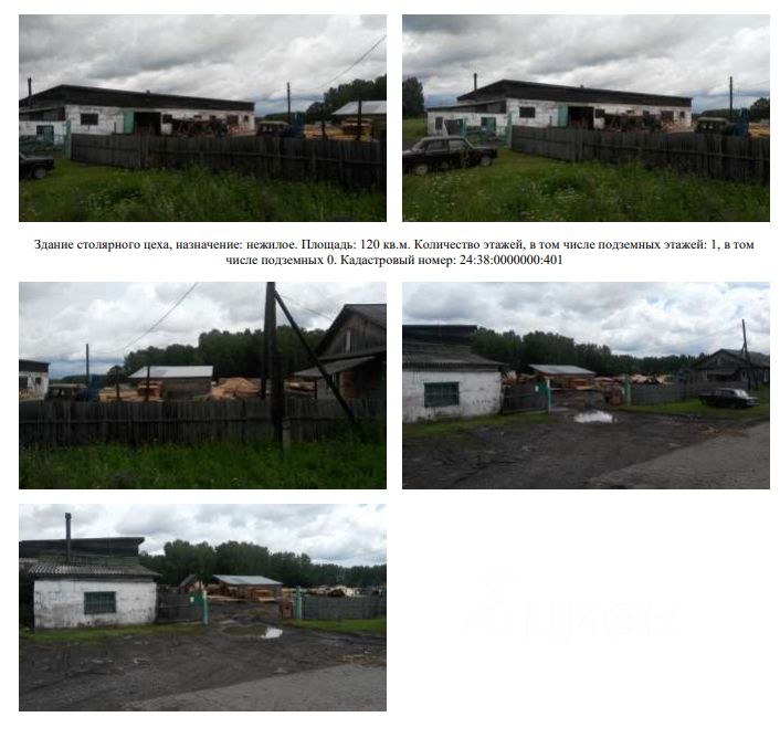Столярный цех бывшего ГП Красноярсклес. Красноярский край, Тюхтетский р-н, с Тюхтет, ул. Кирова, д. 124. Год постройки-1970. Материалы стен-деревянные. Водопровод, канализация, горячее водоснабжение, отопление, газ - центральное (не подключено).