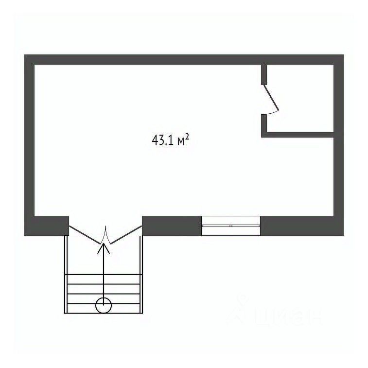 Общая площадь 43, 1 кв.м., расположено на первом этаже.