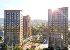 ЖК "Биография" - это три 17-этажных дома из чистого кирпича с большой площадью остекления и тонированными витражными балконами