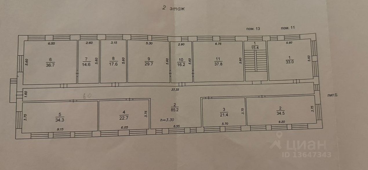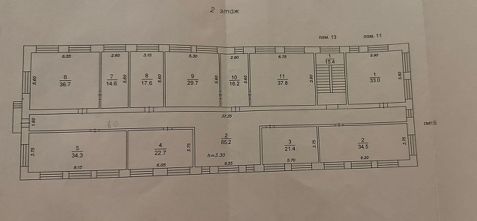 На втором этаже находится 11 кабинетов разной площади;