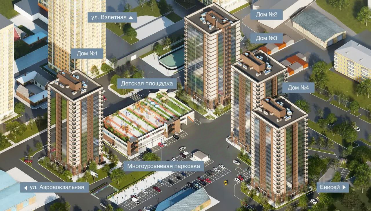 Район Аэровокзальной - это та локация, где близость к основным точкам притяжения Взлётки сочетается с изолированностью и спокойной атмосферой. Рядом вся развлекательно-досуговая инфраструктура, ТРЦ "Планета" и основные транспортные развязки. Но при этом дома стоят не на первой линии, отделены от шумных магистралей, а из окон виден Енисей и центр города.
