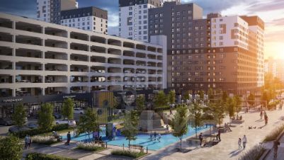 Для машин за периметром квартала устроены наземные парковки и крытый семиэтажный паркинг.