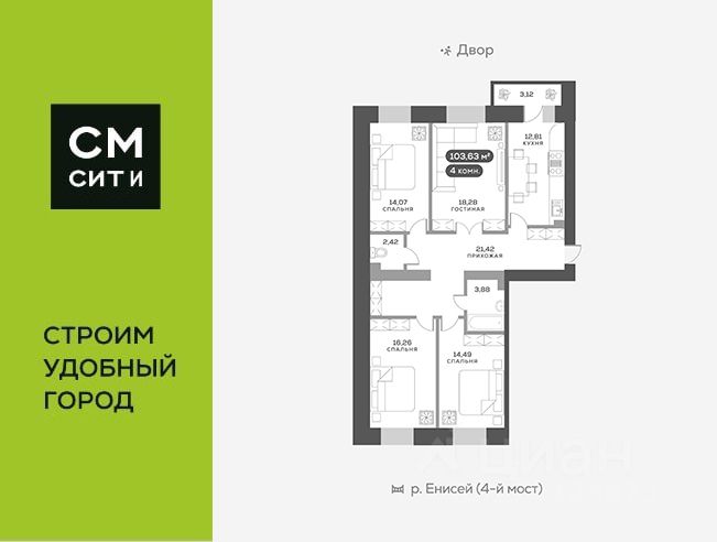 Новый Академгородок - сити-район из восьми кирпичных домов-кварталов на берегу Енисея.