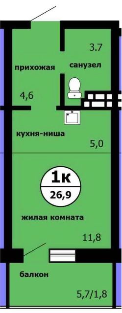 26,9 м²