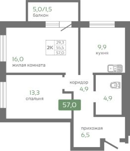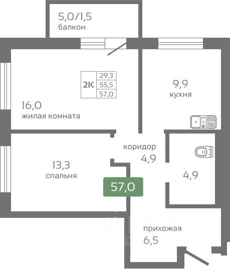 Общая площадь57 м²