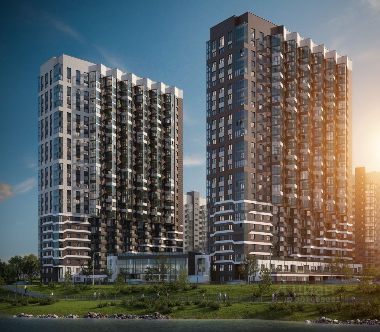 Большая часть квартир в жилом комплексе видовые, реку и панораму города видно не только с верхних этажей.