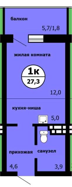 Общая площадь27,3 м²