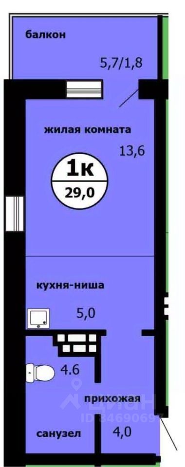 Общая площадь28,4 м²