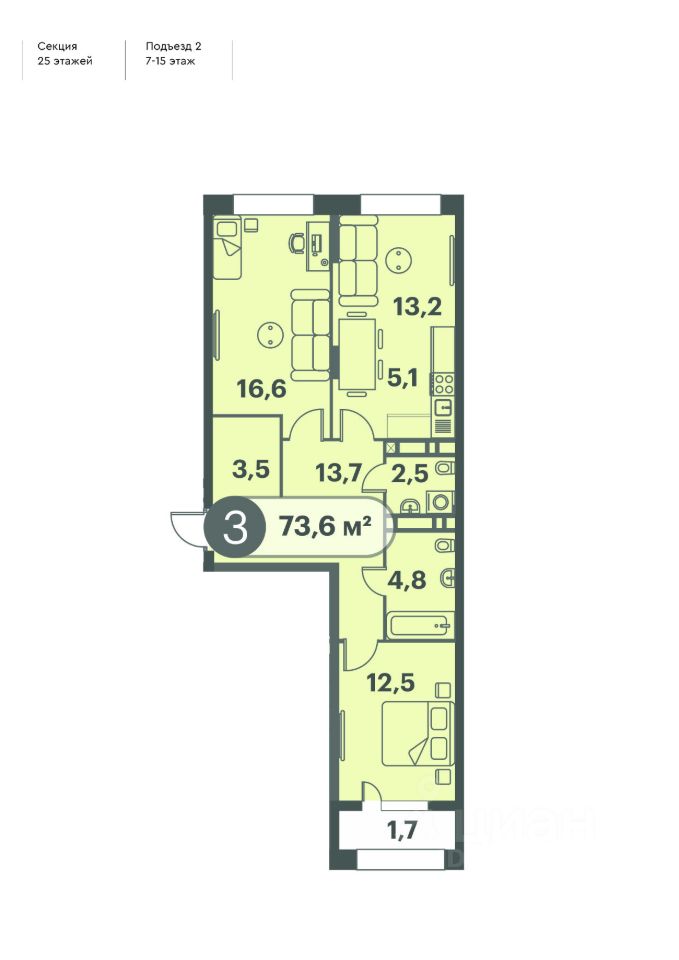 73,6 м²