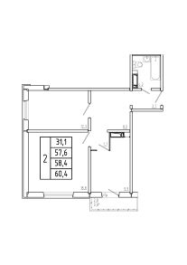 Общая площадь58,4 м²