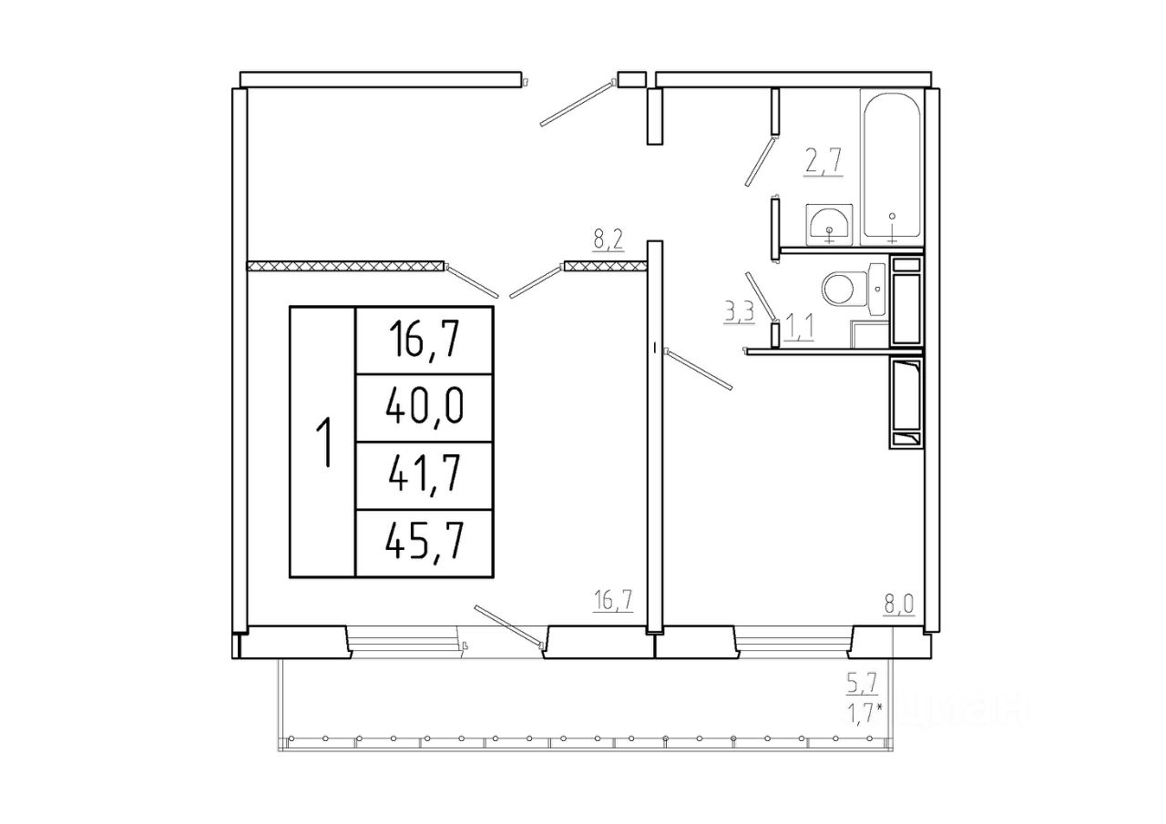 Общая площадь41,7 м²