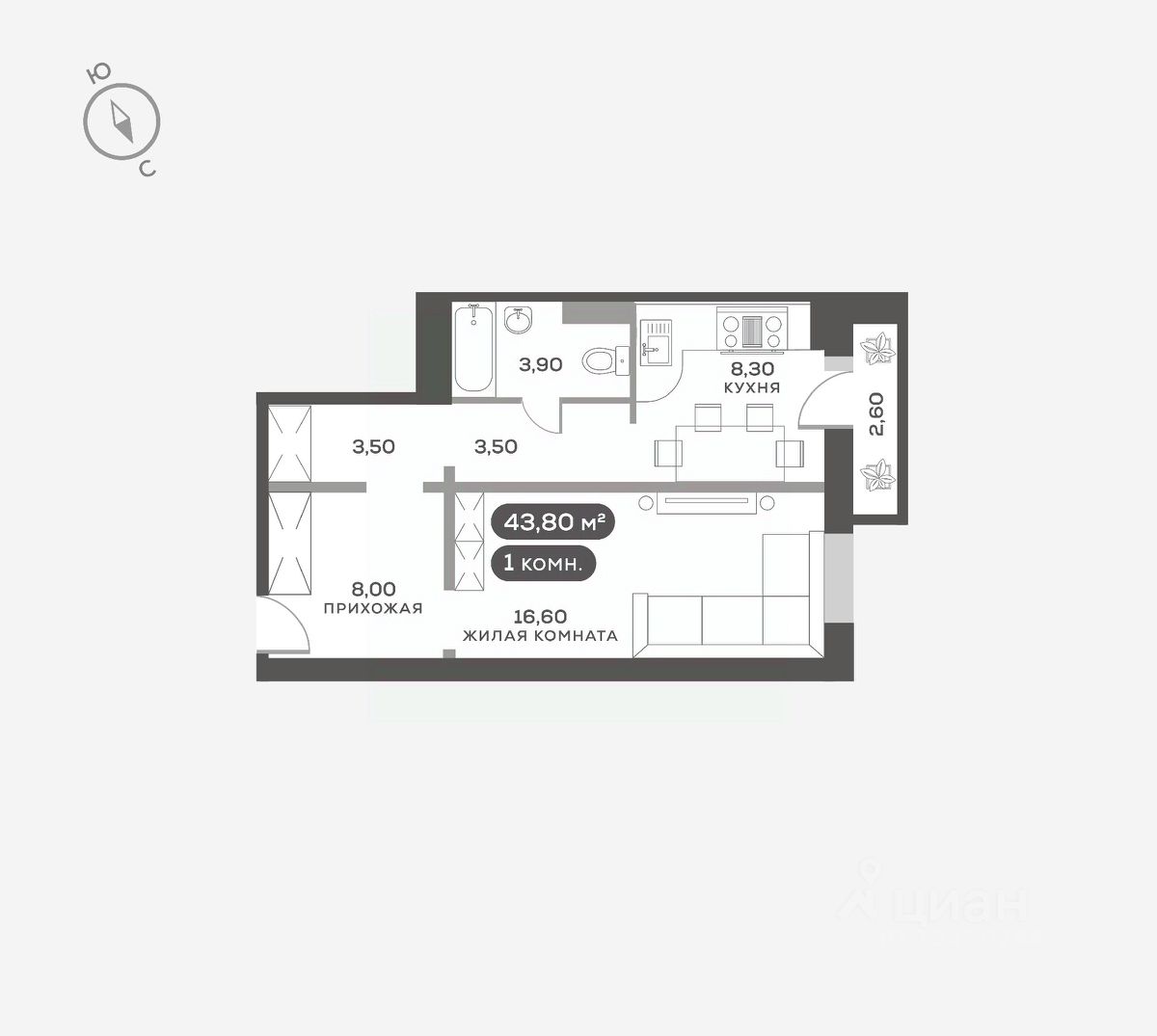 Квартира с чистовой отделкой: светлые обои и линолеум, натяжной потолок, радиаторы, розетки, выключатели, сантехника и кафель на полу в санузле. Можно заселяться сразу после сдачи дома!