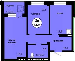 2-комнатная 61 м²