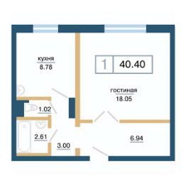 Продаётся 1-комнатная квартира в строящемся доме (Дом 11), срок сдачи: IV-кв. 2026, общей площадью 40.4 кв.м., на 1 этаже. Расположение, транспортная доступность
