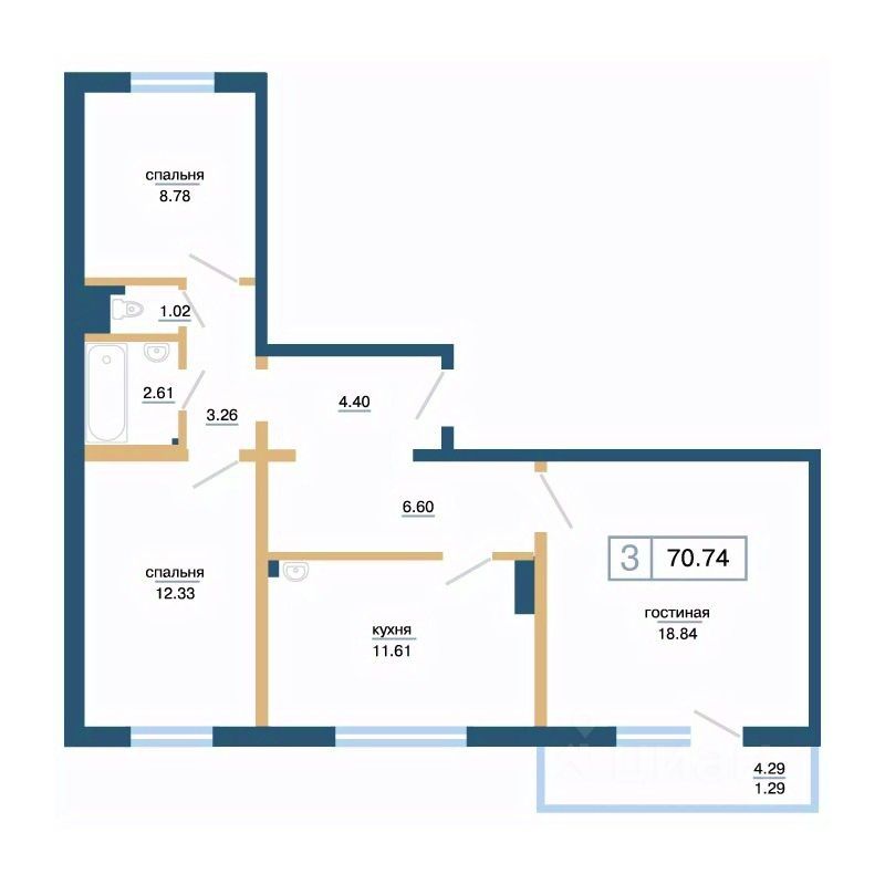 Общая площадь70,74 м²