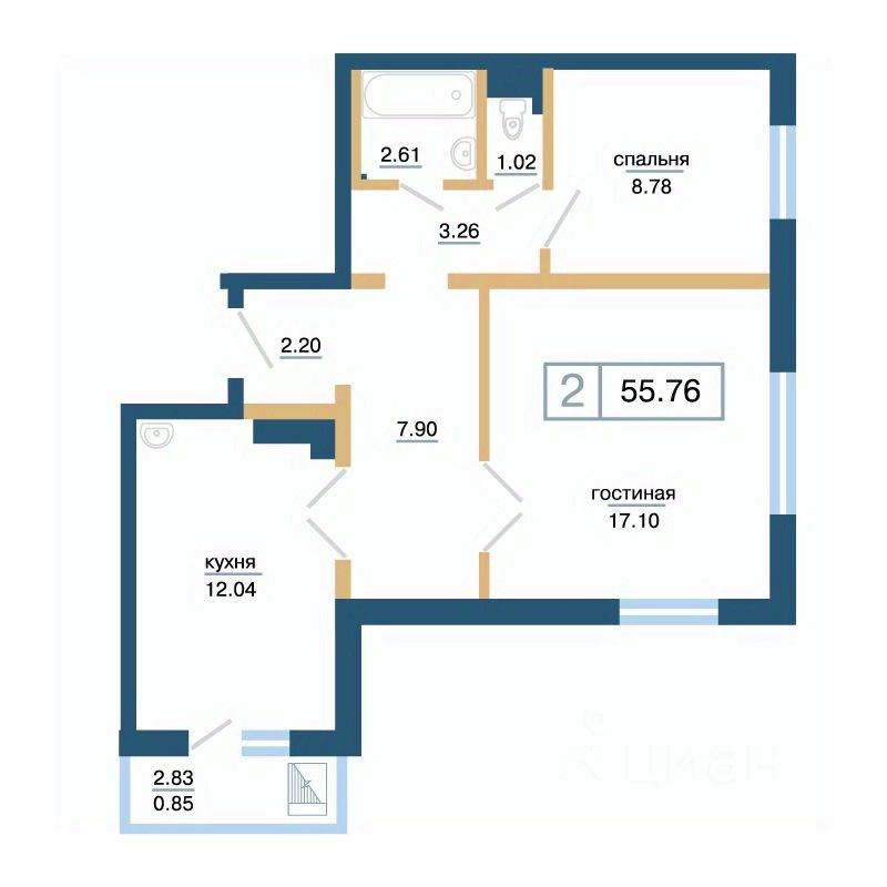 Продаётся 2-комнатная квартира в строящемся доме (Дом 11), срок сдачи: IV-кв. 2026, общей площадью 55.76 кв.м., на 16 этаже. Расположение, транспортная доступность