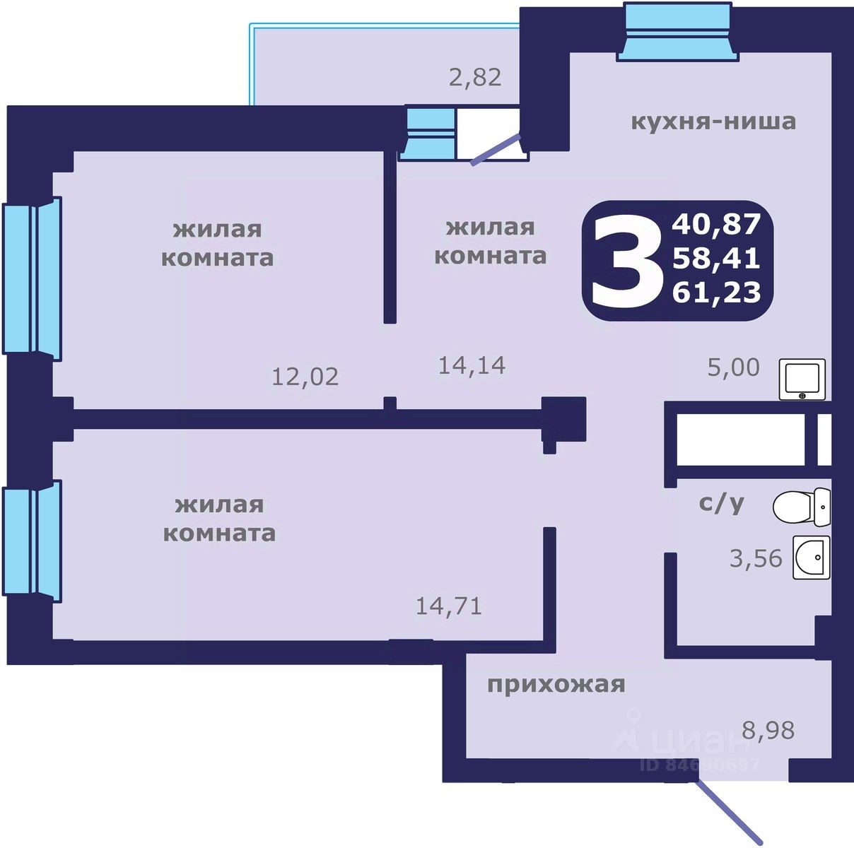 Общая площадь61,23 м²