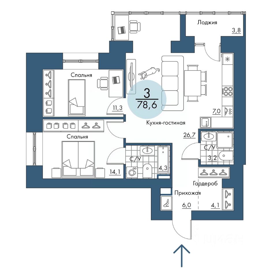 78,6 м²