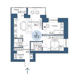 Общая площадь78,6 м²