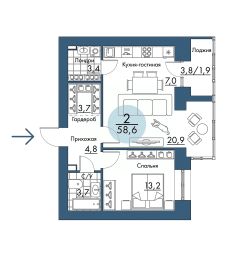 Общая площадь58,6 м²