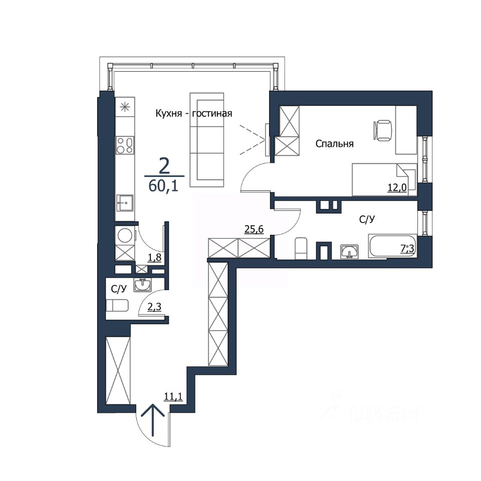 Продаётся 2-комнатная квартира в сданном доме (Корпус 1 (ГП-1)), срок сдачи: III-кв. 2025, общей площадью 60.1 кв.м., на 23 этаже. Новый высотный микрорайон "ЧИЖИ" от Группы строительных компаний "Арбан" расположен в Центральном районе Красноярска на ул. Петра Подзолкова.
