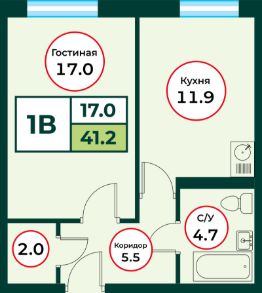 Продаётся 1-комнатная квартира в строящемся доме (ЖК Эко, 3 (Дом 3)), срок сдачи: IV-кв. 2026, общей площадью 41.2 кв.м., на 1 этаже.