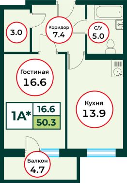 Продаётся 1-комнатная квартира в строящемся доме (ЖК Эко, 3 (Дом 3)), срок сдачи: IV-кв. 2026, общей площадью 50.3 кв.м., на 5 этаже.