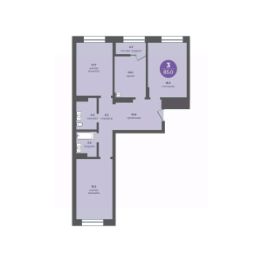 3-комнатная квартира на 6 этаже в 10-этажной секции прогресс-кварталов "Перемены".