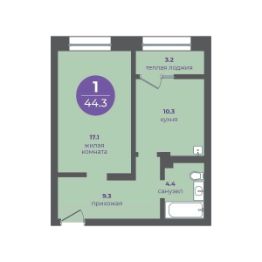 Общая площадь44,3 м²