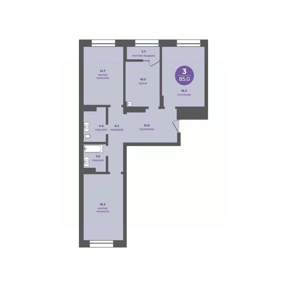 3-комнатная квартира на 6 этаже в 10-этажной секции прогресс-кварталов "Перемены".