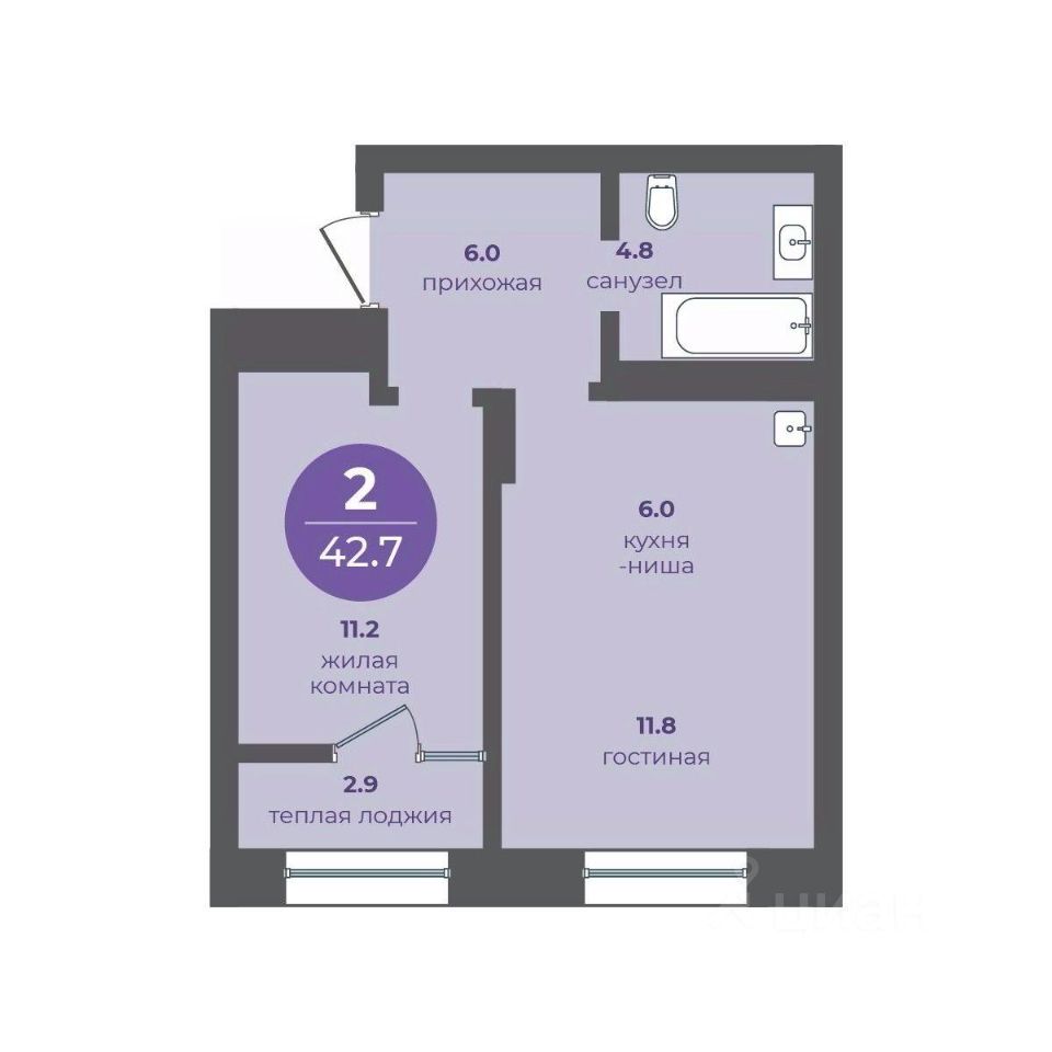 Общая площадь42,7 м²