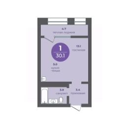 1-комнатная квартира на 11 этаже в 13-этажной секции прогресс-кварталов "Перемены".