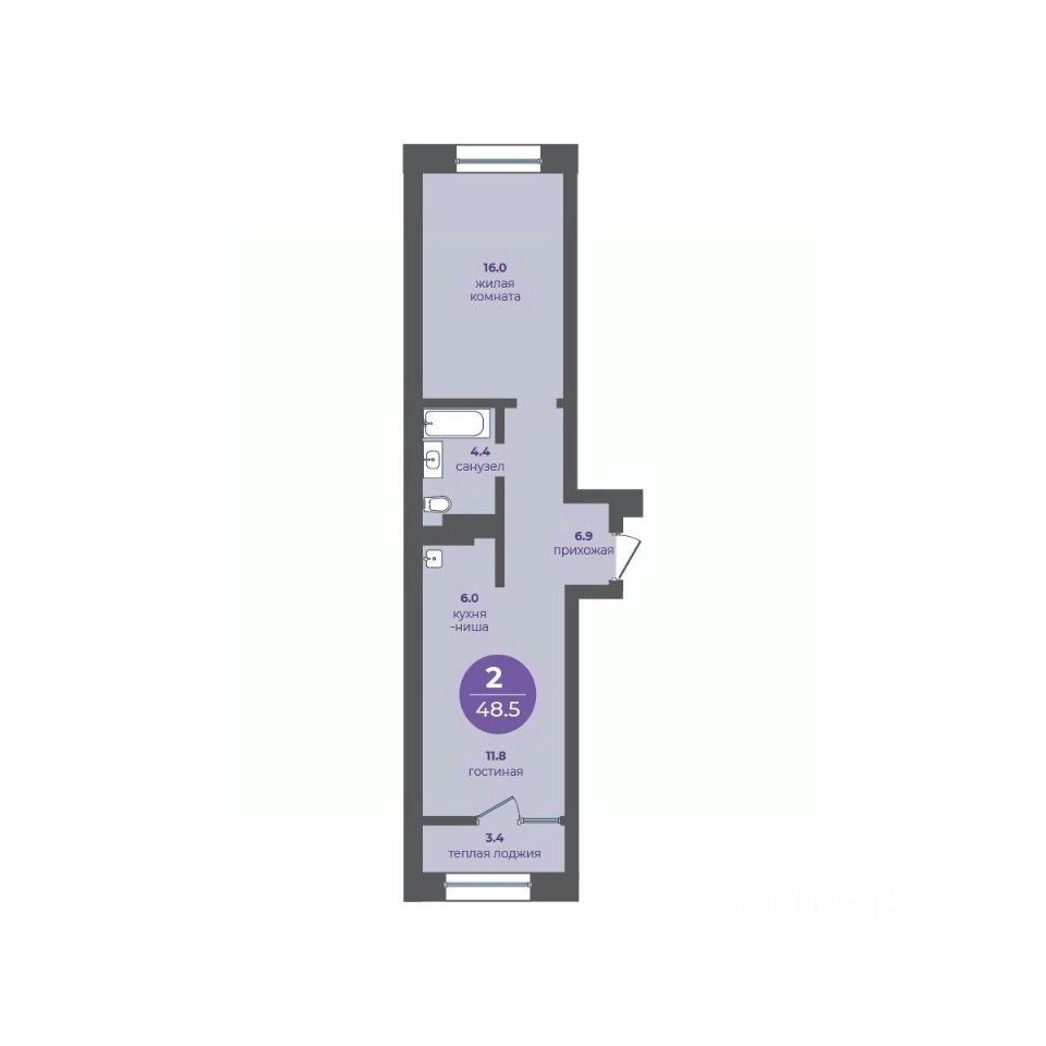 2-комнатная квартира на 2 этаже в 16-этажной секции прогресс-кварталов "Перемены".